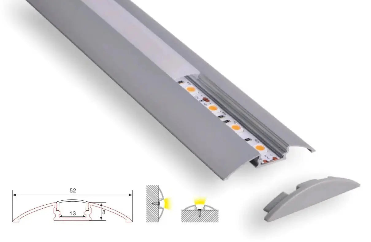 Profiel | Inbouw | 1 Meter | Hoek | Aluminium | 52 x 8 | COB ledstrip