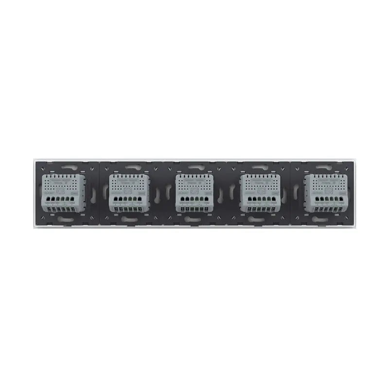 O interruptor Livolo Slide Dimmer Exchange foi projetado para ser confiável e durável. A instalação do interruptor Livolo Touch Slide Dimmer Exchange é muito simples e não requer um plano de fundo técnico. Pode ser montado horizontal e verticalmente e é adequado para cinco pontos de luz ou cinco grupos de lâmpadas com uma potência máxima de 440 watts por saída. Para iluminação LED, isso significa que você pode conectar várias lâmpadas, dependendo de sua potência.